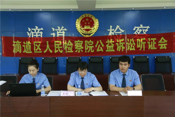 主持人介绍了滴道区检察院公益诉讼办案组对滴道区烈士陵园走访调查出的事实情况。